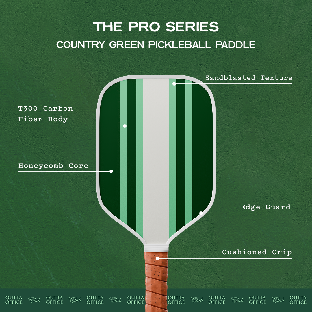 Looking for precision and power control? The Country Green Pickleball Paddle is the one for you. All our Pro paddles are made with premium T300 carbon fiber that’s lightweight and durable, perfect for intermediate to advanced players. Here’s to dominating the court in style.